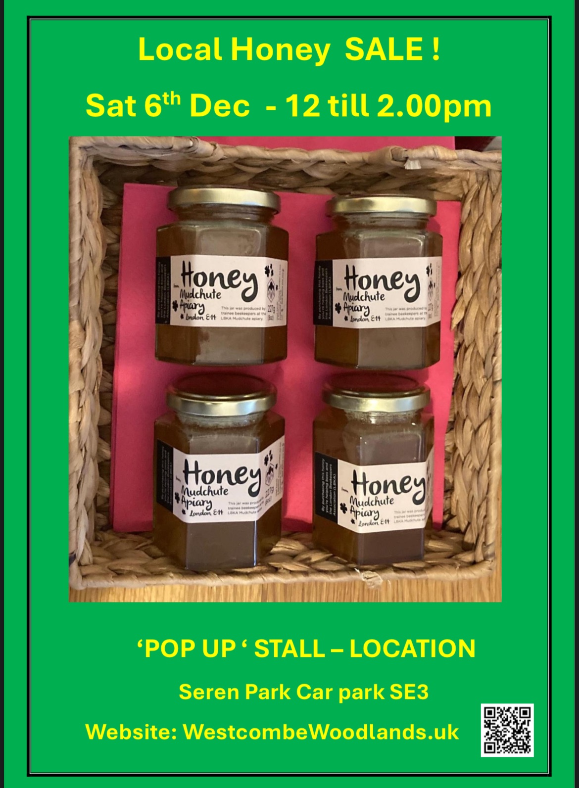 Saturday, the 6th of December is our last Westcombe Woodlands volunteer morning of 2025, how time flies! In addition to reminding everyone of the event (starting as usual at 10 o’clock), on the same day from midday until 2pm, we will be hosting a local honey sale in the Seren Park Gardens’ car park. We’ll be selling honey from Mudchute City Farm on the Isle of Dogs – £10 a jar & profits going to the Woodlands.